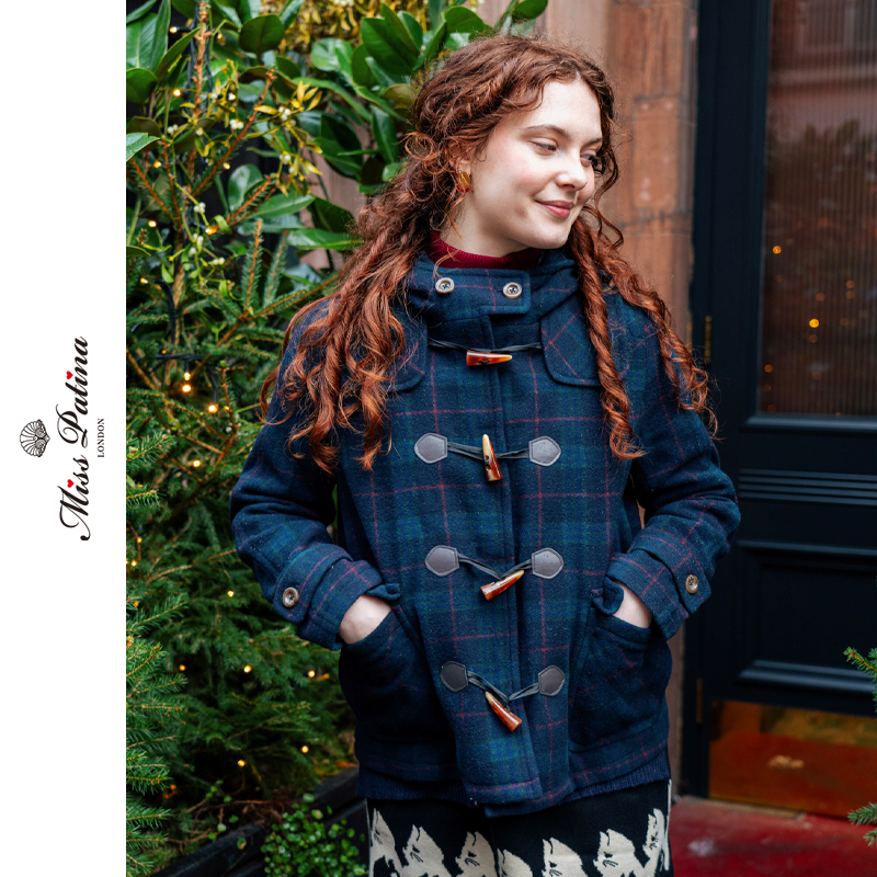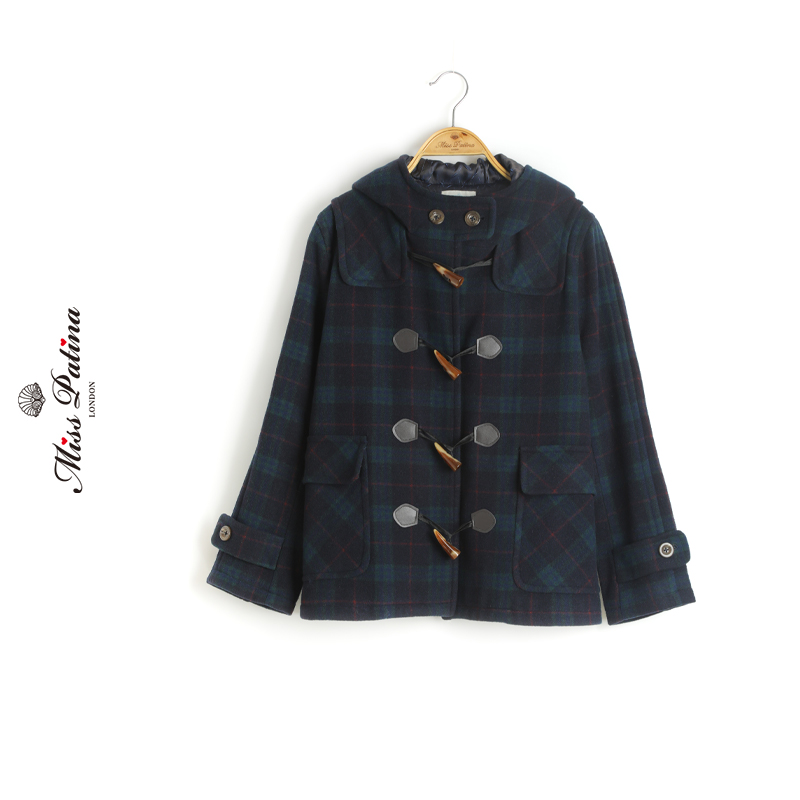 MP大不列颠英伦经典 大衣外套 苏格兰墨绿格牛角扣学院风连帽短款