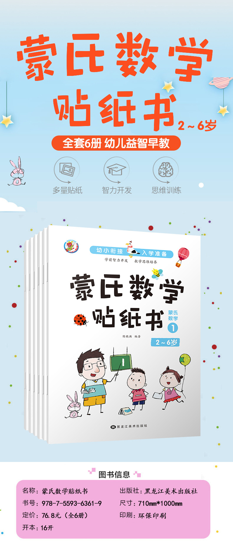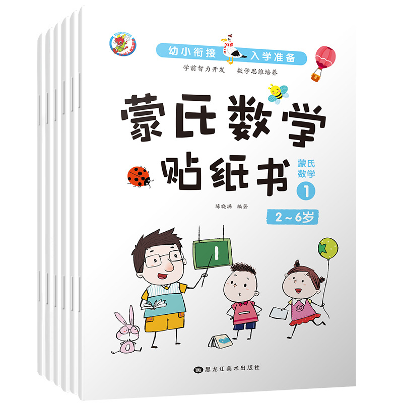 6岁宝宝早教贴画贴图小孩粘贴纸益智玩具黑龙江美术出版 6岁全6册幼儿童蒙氏数学贴纸书2 社 小龙人蒙氏数学贴纸书1