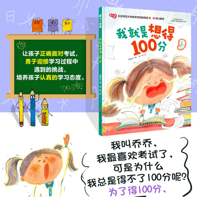 上课认真听考试不紧张书写认真仔细审题同时告诉孩子如何应对学习中遭遇 我就是想得100分 学前教育 爱上一年级系列绘本 挫折 精