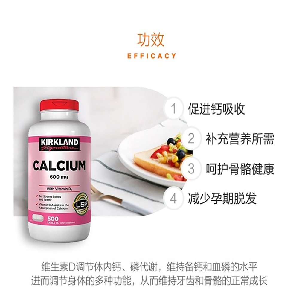 Kirkland科克兰钙片 维生素D3促进钙吸收均衡500粒青少年中老年