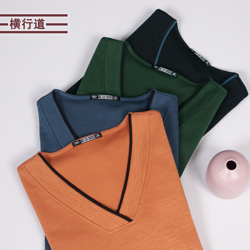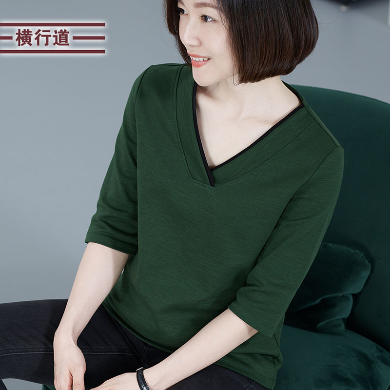 胖MM中袖 2025秋装 纯棉大码 打底衫 t恤上衣女 黑色v领中年妈妈七分袖