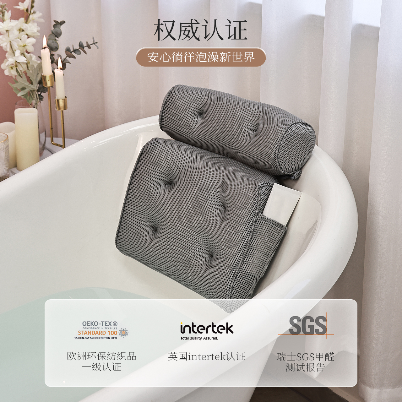 法国DIGIFOX升级款 浴缸防滑靠枕浴室防滑垫泡澡卫浴用品 灰色经典
