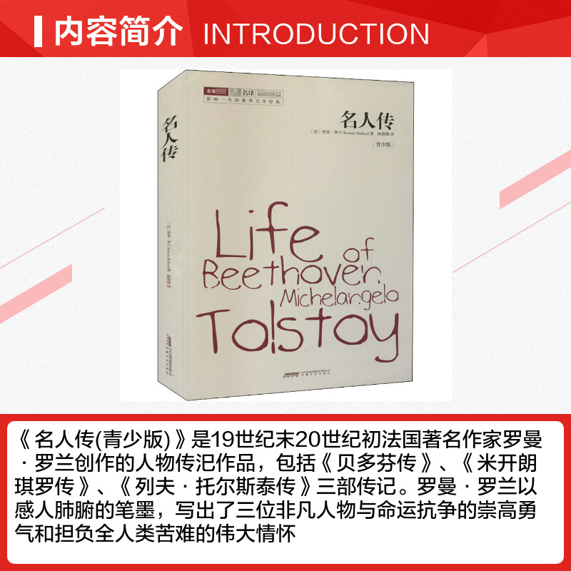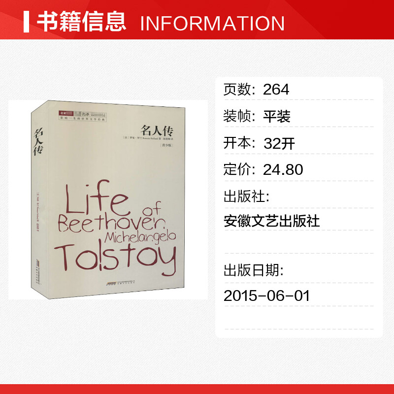 图书籍 社 罗曼·罗兰 译 世界名著文学 陈筱卿 法 著 安徽文艺出版 名人传 新华书店正版 青少版