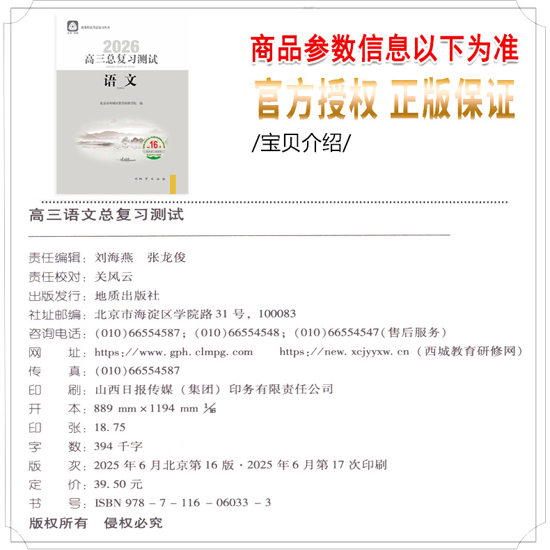 学习探究诊断北京市西城教育研修学院地质出版 2026新高三语文总复习测试第16版 北京西城学探诊高中语文总复习高3高考语文练习册