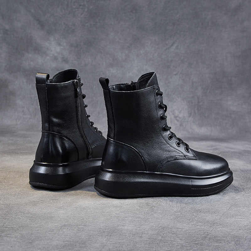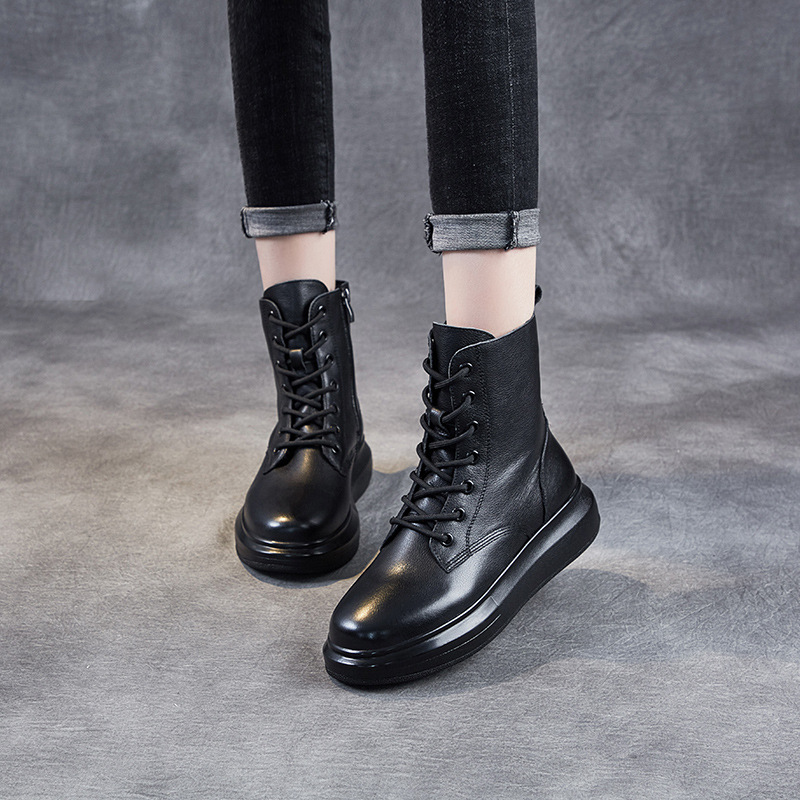 英伦风女鞋 女靴厚底真皮女士短靴女春秋单靴加绒 马丁靴女2025新款