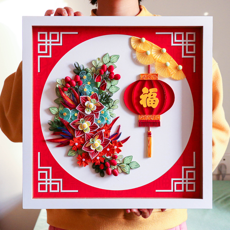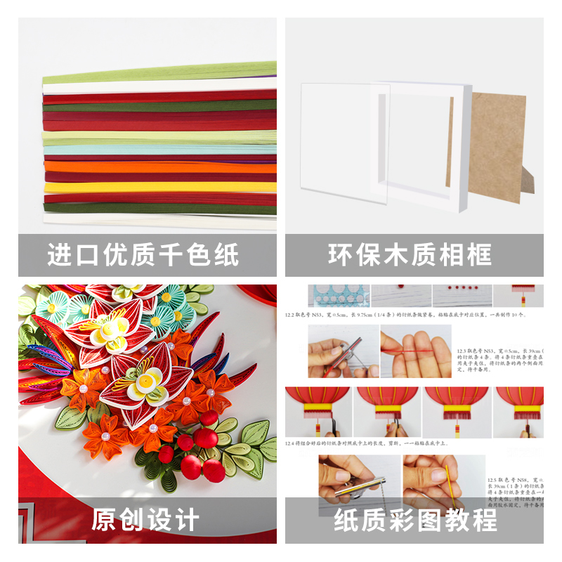 饰衍纸画含教程成品亲子 38创意手工DIY韵雅春节装 指艺时代高级创意手工春熙衍纸套装 材料包38