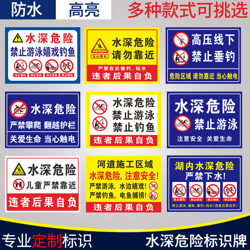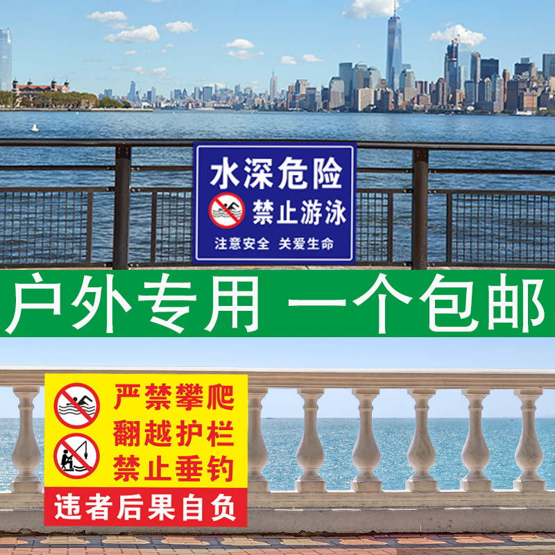水深危险警示牌当心溺水安全标识池塘水库河边湖边严禁游泳标志禁止垂钓钓鱼严禁攀爬翻越护栏标示铝板反光牌