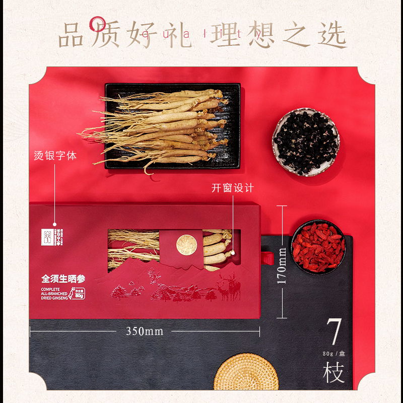 长白山人参整根人参干货人参礼盒送长辈全须生晒参节日礼盒补品
