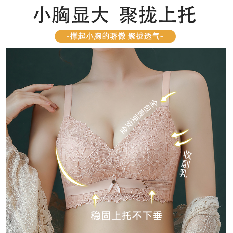 内衣无钢圈加厚文胸女小胸聚拢收副乳防下垂厚款 女 调整型胸罩套装