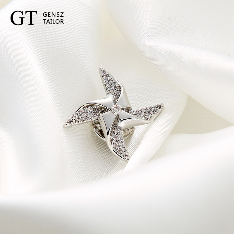 男女胸针胸花领花饰品 领子西装 GT绅诚 风车胸针微镶锆石高档衬衫