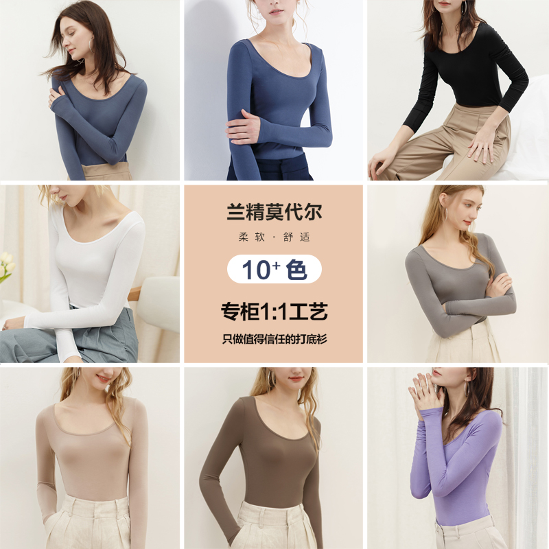 莫代尔打底衫 内搭肤色贴身t恤上衣 女薄秋衣大圆领口黑色低领长袖