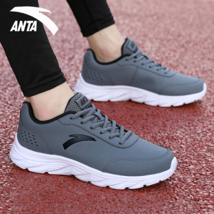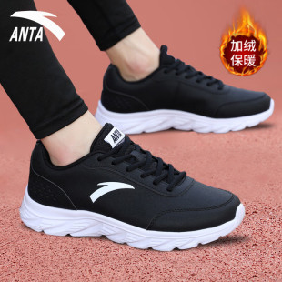 新款 加绒夏季 防水鞋 子官网旗舰店男款 男 安踏男鞋 运动鞋 皮面跑步鞋