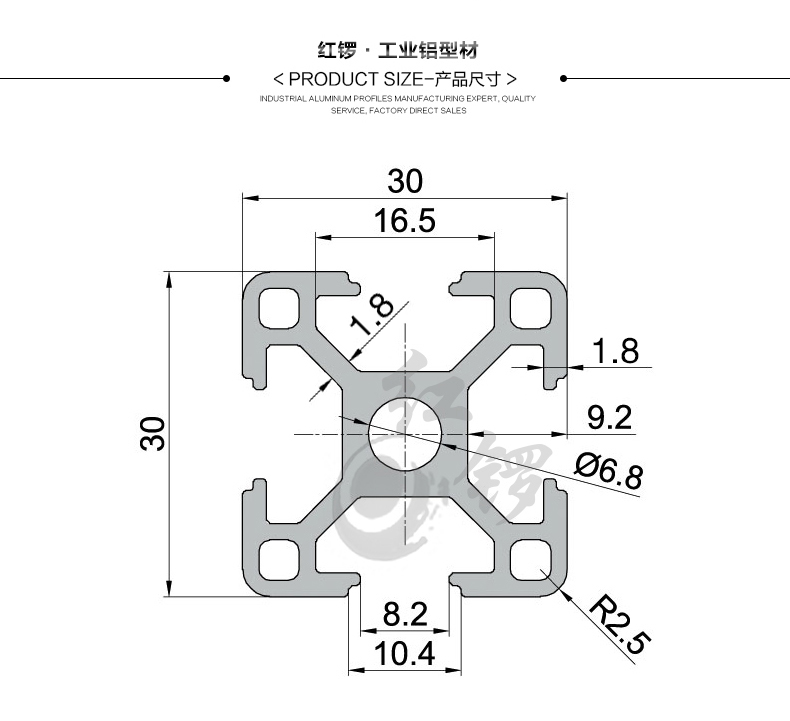 红锣工业3030铝型材3030欧标氧化黑色3030铝材国标流水线30铝合金
