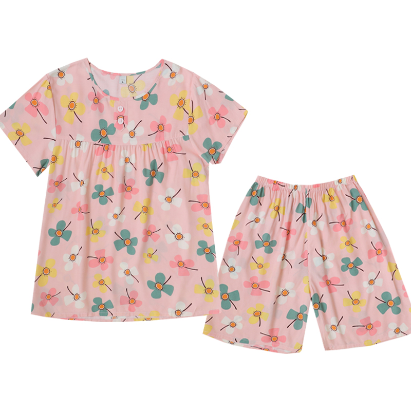 棉绸睡衣女清凉宽松家居服人造棉两件套装 圆领薄款 短裤 夏绵绸短袖