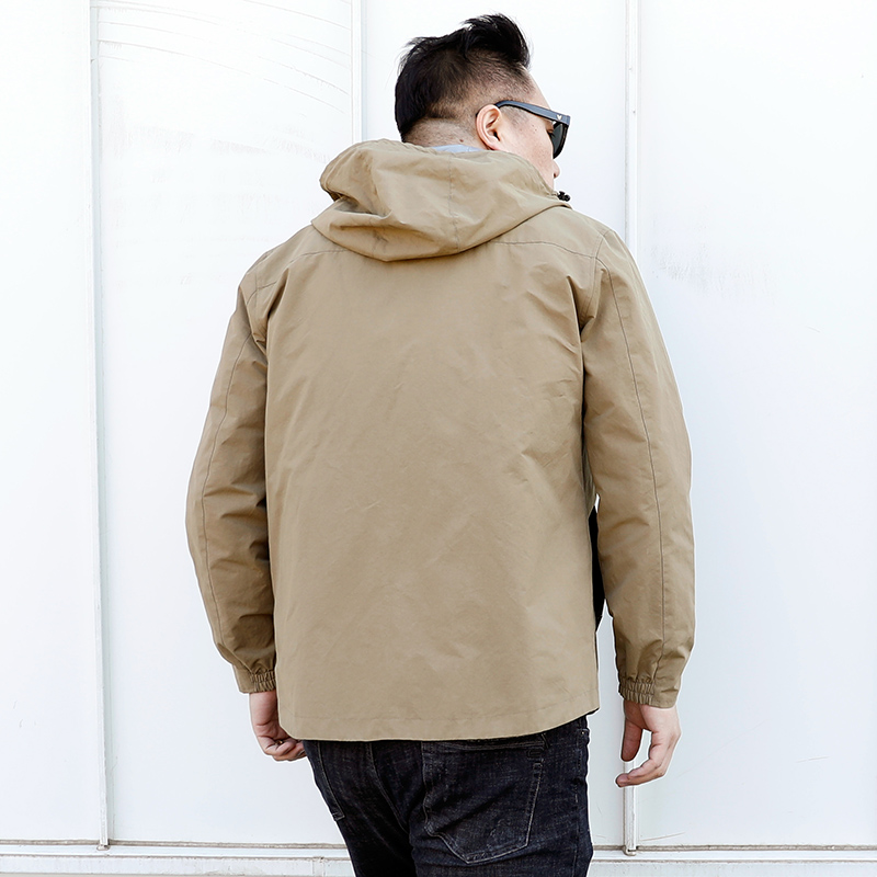 短款 男士 连帽夹克外套风衣 户外日系大号潮胖子加肥加大码 春秋新款