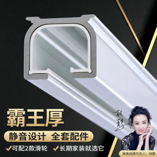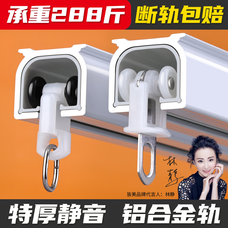 窗帘轨道滑轮直轨重型加厚静音窗帘盒双轨导轨侧顶装 窗帘杆子配件