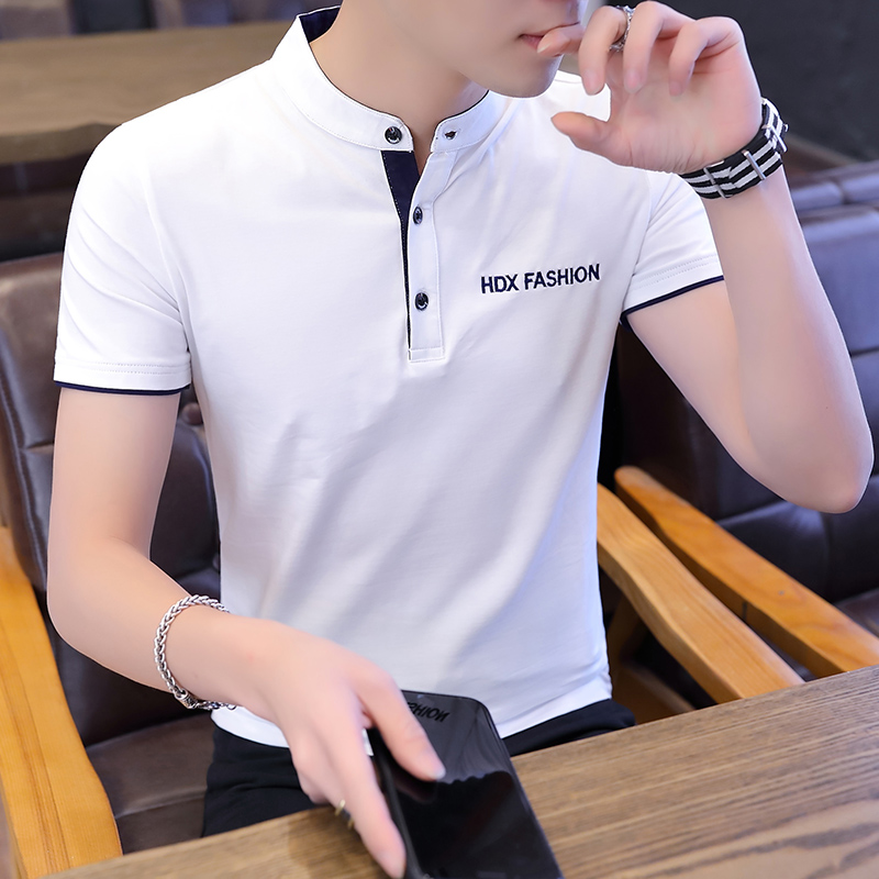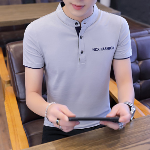 男纯色百搭夏装 运动休闲拼接短袖 领polo衫 衬衫 衣服 t恤男2025新款