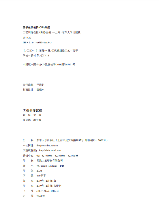 部委规划教材 东华大学出版 社 工程训练教程 范金辉 十三五 陈铮 9787566916853 高等教育