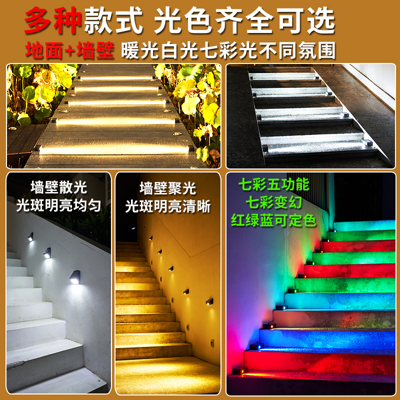 太阳能庭院灯户外楼梯灯防水感应脚踏步道花园装 饰地灯室外台阶灯