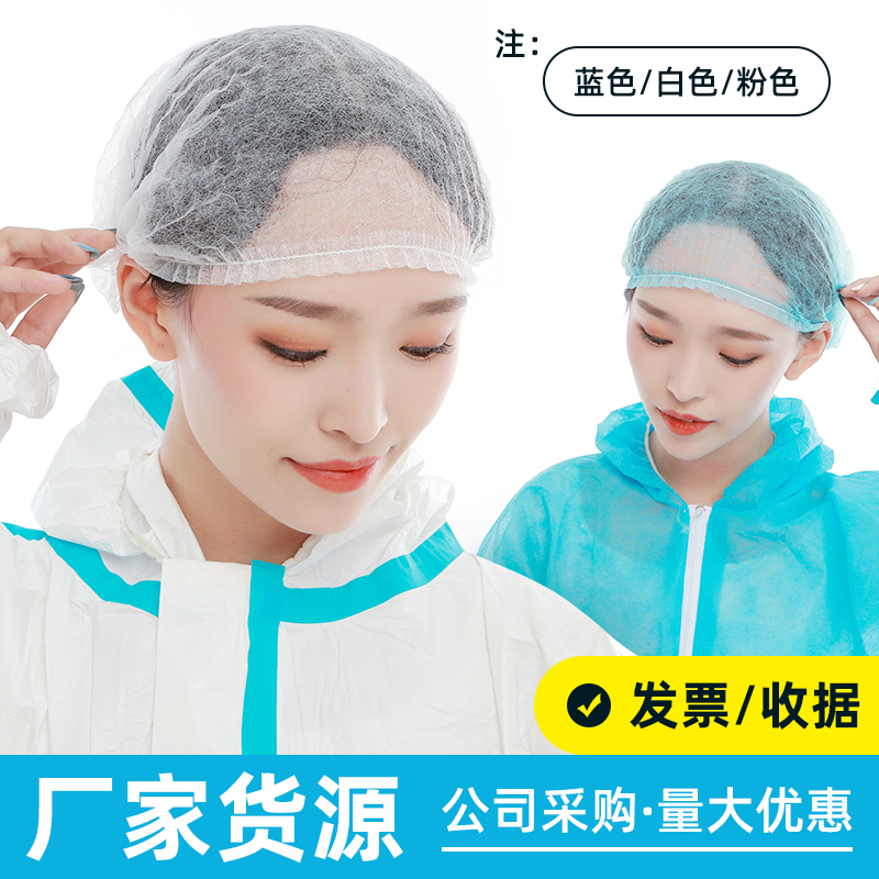 500只一次性帽子白色蓝色防尘无纺布透气头套无尘车间食品工作帽