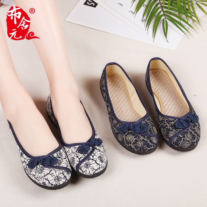 舒适透气妈妈母亲 女民族风一脚蹬软底平底浅口单鞋 春季 老北京布鞋