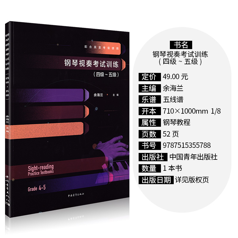 钢琴视奏考试训练4 社 5级钢琴教程书籍英皇考级钢琴视奏训练钢琴练习曲余海兰中国青年出版