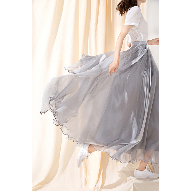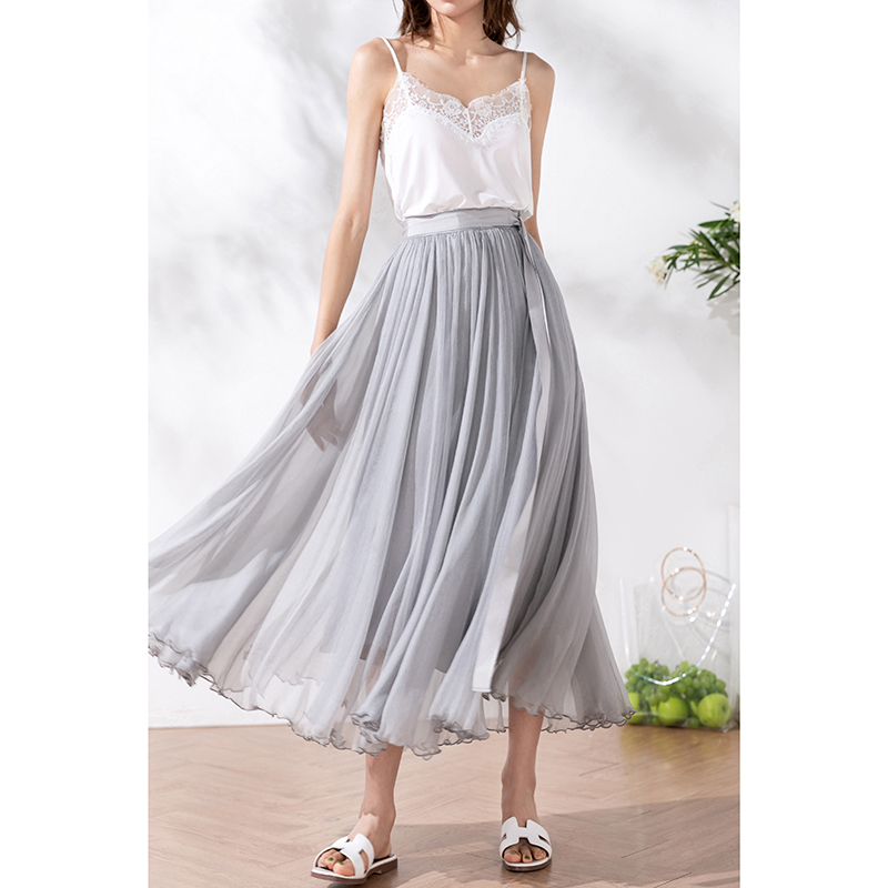 灰色针织百褶裙女春秋2025新款 半身裙 高腰韩系百搭秋冬毛呢中长款