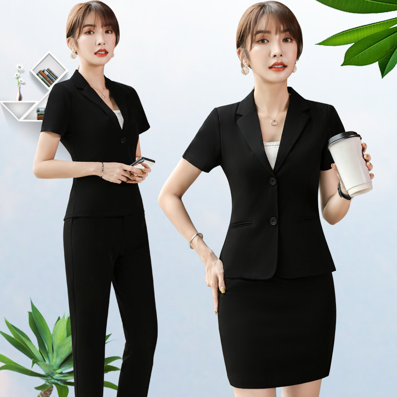 女夏季 短袖 正装 套裙酒店前台工装 工作服 气质经理通勤西装 职业套装