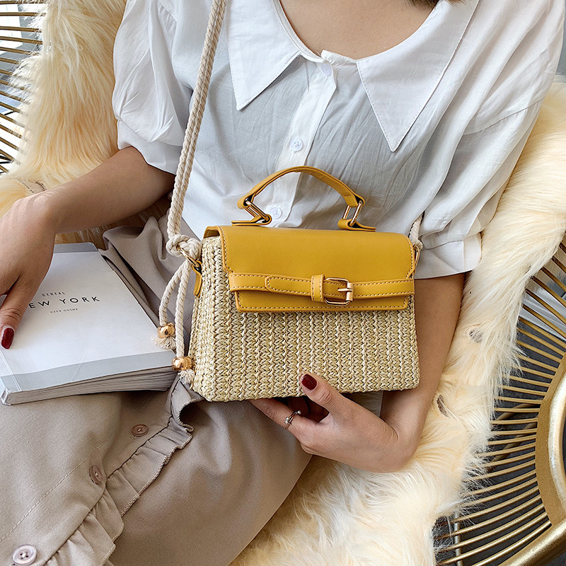 潮高级感手提草编小方包女包 新款 ins超火时尚 盒子包上新2023夏季