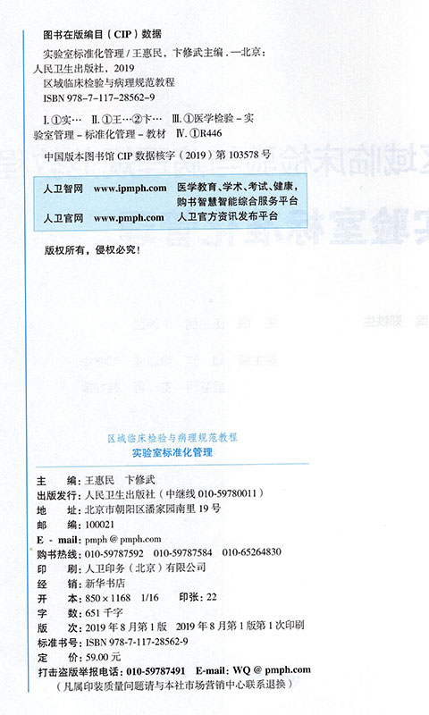 区域临床检验与病理规范教程 王惠民 实验室标准化管理 社 卞修武主编 人民卫生出版 现货