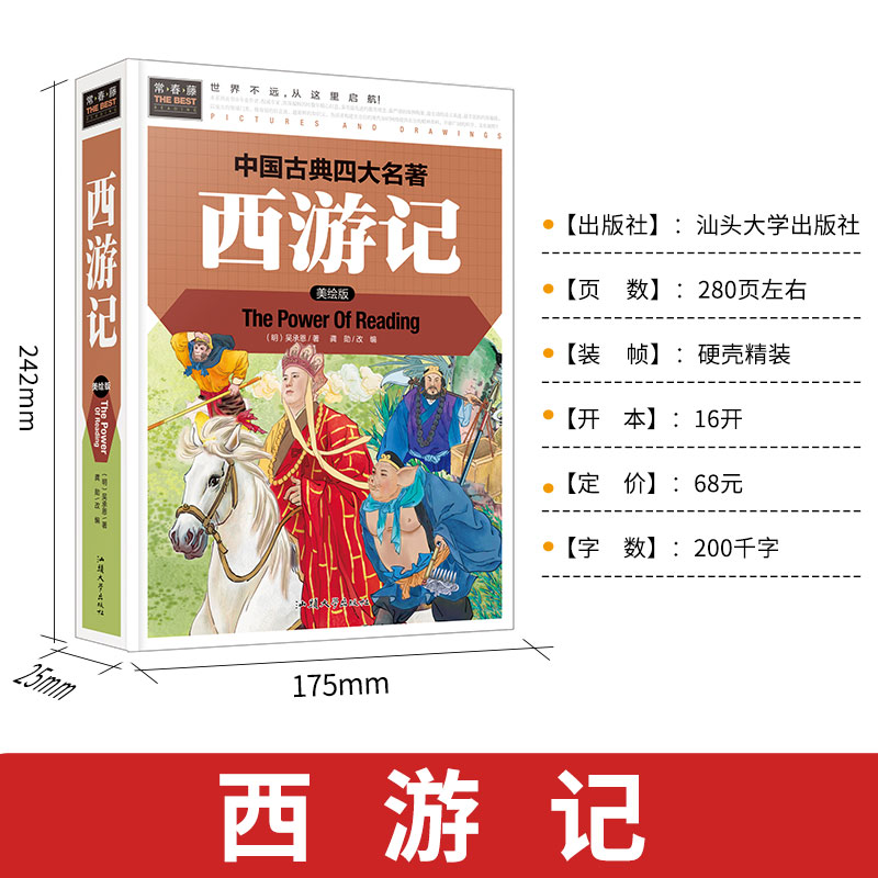 课外书 硬壳精装 6年级课外阅读书籍白话文儿童版 原著正版 四年级五年级至六年级必读 西游记小学生版 四大名著全套青少年版