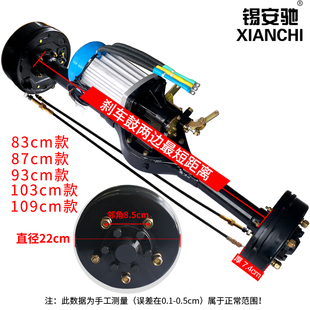 电动三轮车后桥总成60v一体改装 油刹通用载重王大功率四轮车后桥