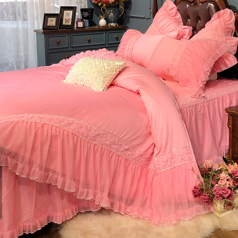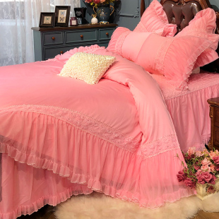 好梦连连60支贡缎公主风四件套花边蕾丝宫廷范床裙床罩床上用品
