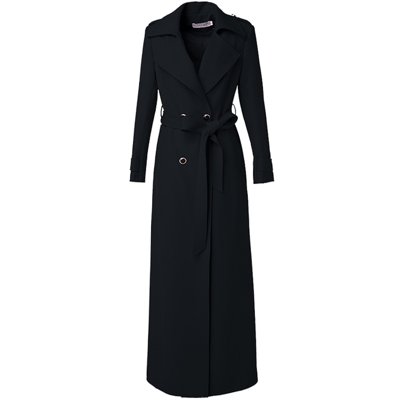 韩版 长款 呢子加厚风衣外套 2025春秋季 V37黑色高级感毛呢大衣男款