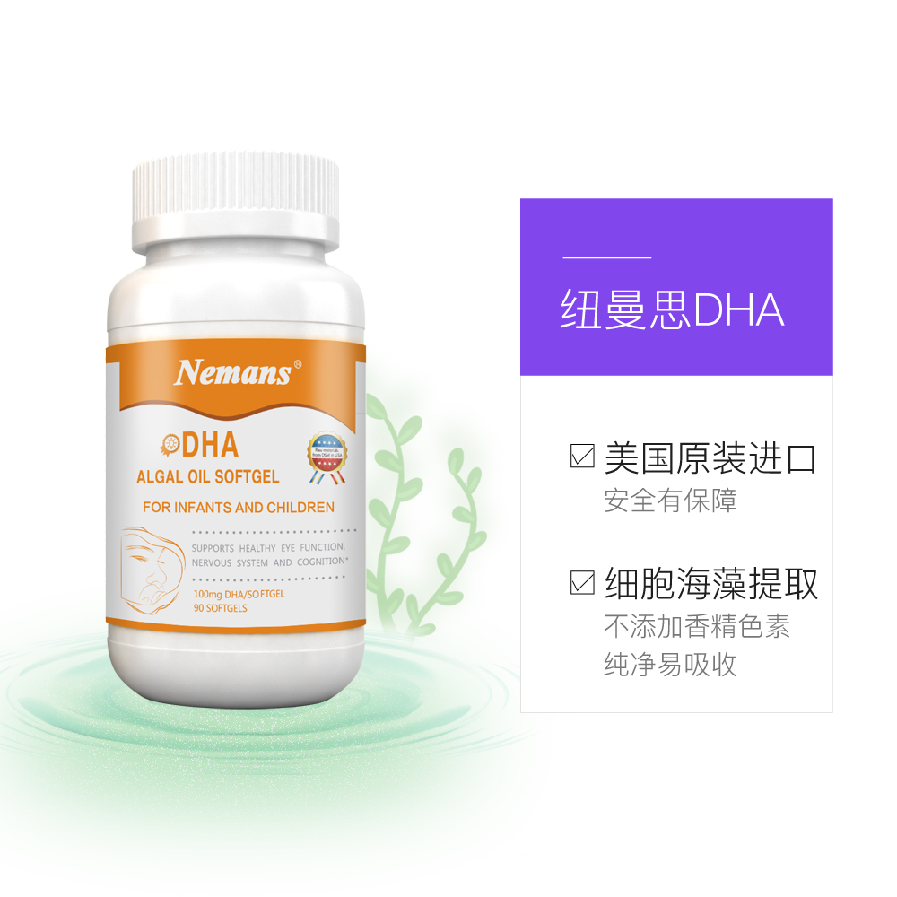 进口藻油DHA婴幼儿&儿童可食用90粒 原名纽曼斯 纽曼思 自营