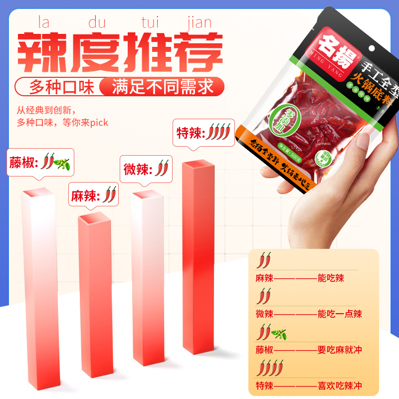 名扬清油微辣火锅底料500g手工全型四川麻辣调料冒菜干锅重庆成都