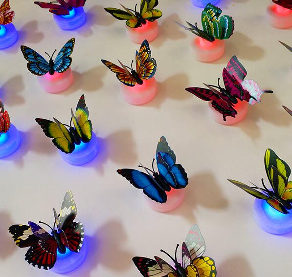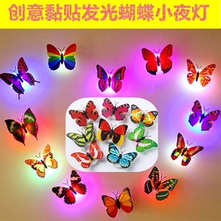 LED七彩小夜灯创意节日装 饰夜光蝴蝶贴儿童房学校布置墙贴自粘胶