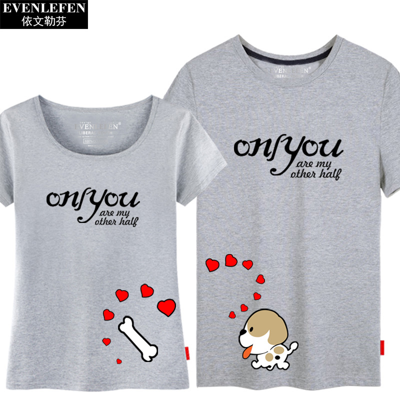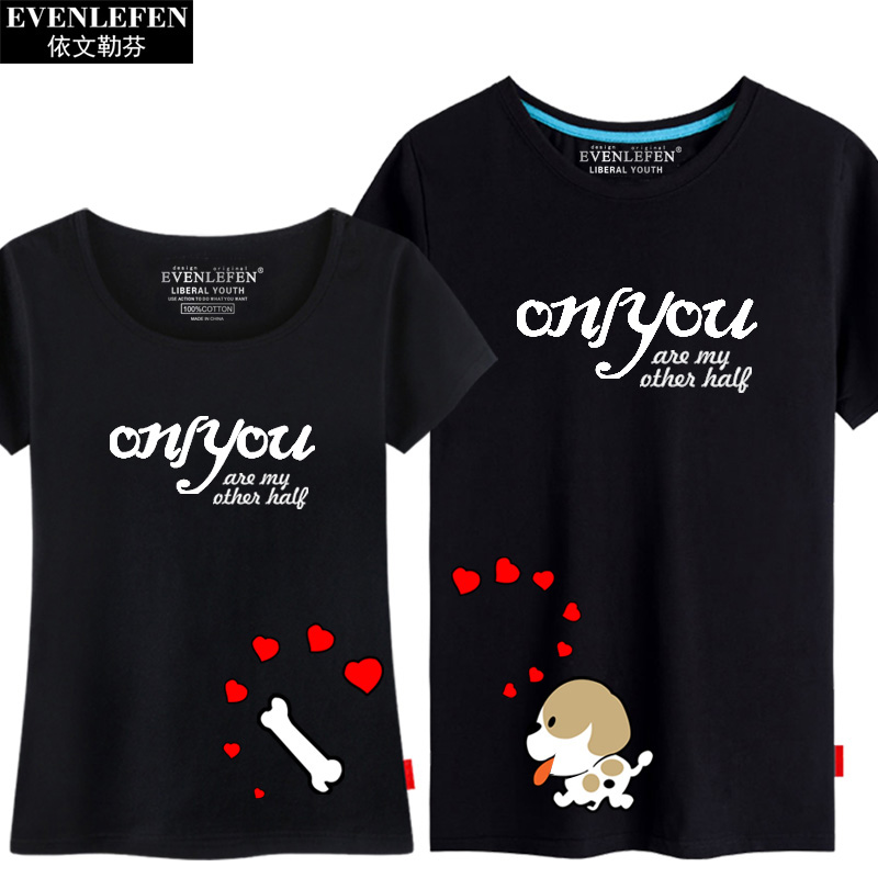 纯棉夏装 小狗骨头情侣装 潮流短袖 t恤男女个性 结婚旅游衣服 半截袖