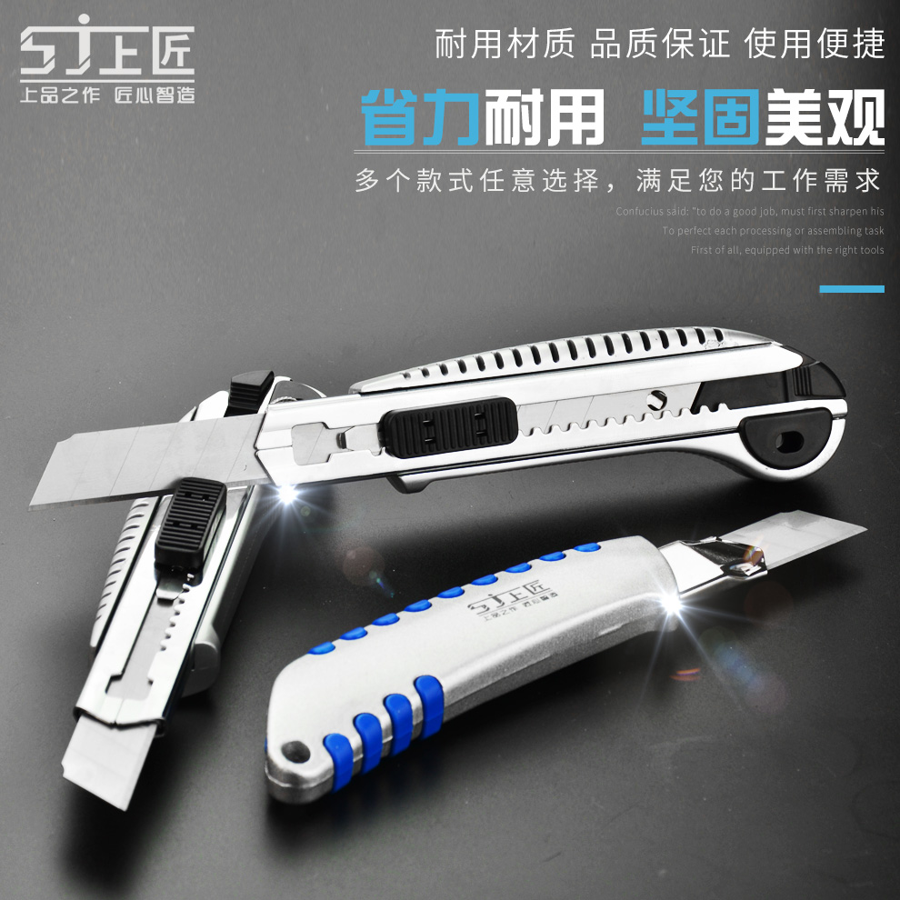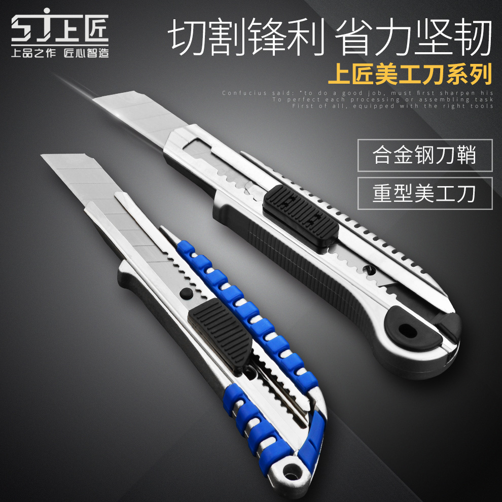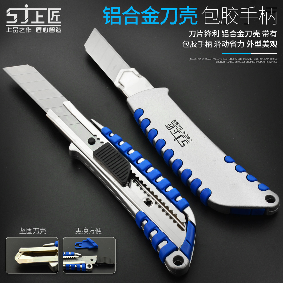 上匠铝合金美工刀 开箱壁纸刀合金钢美工刀片学生用刀 塑柄裁纸刀