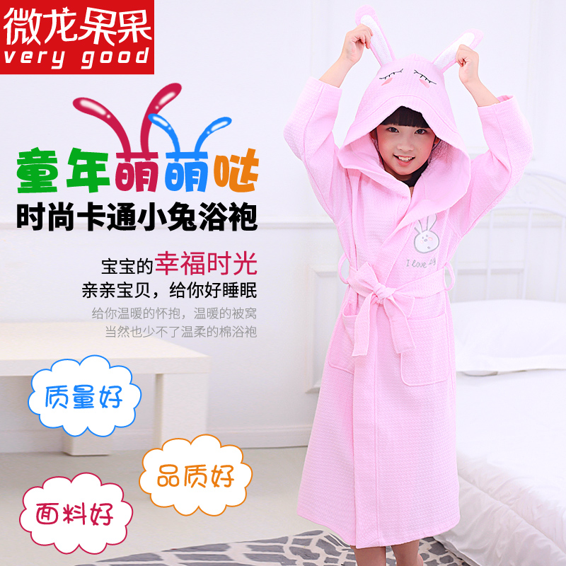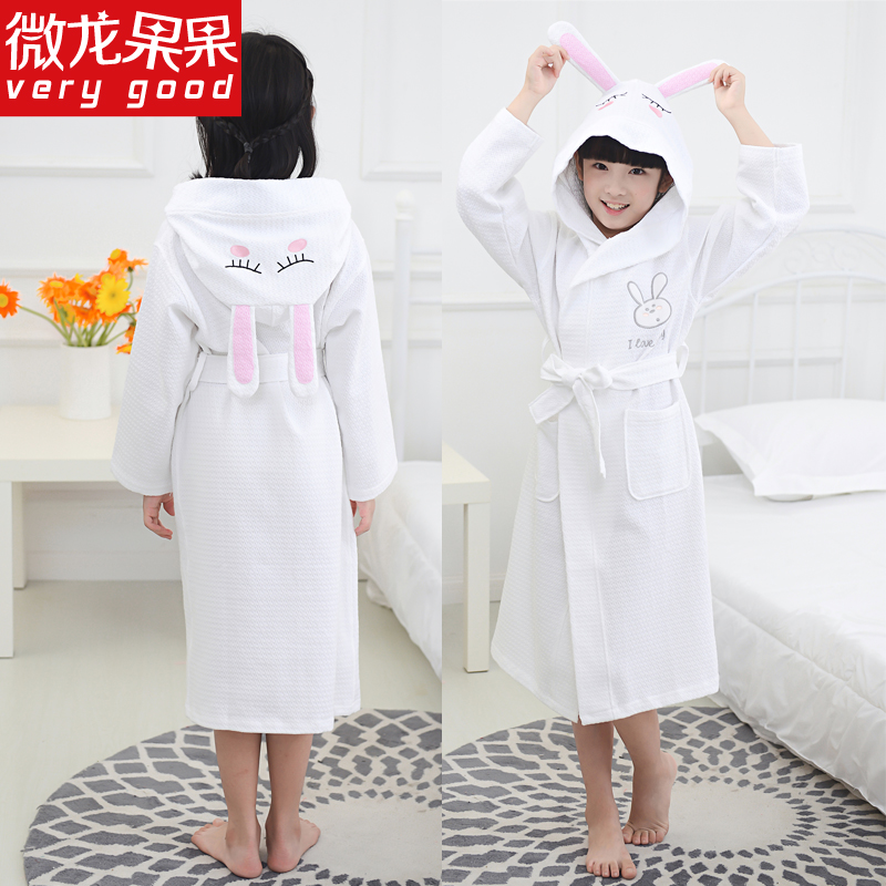 儿童浴袍纯棉中大童男孩女孩男童女童游泳全棉吸水毛巾料浴巾浴衣