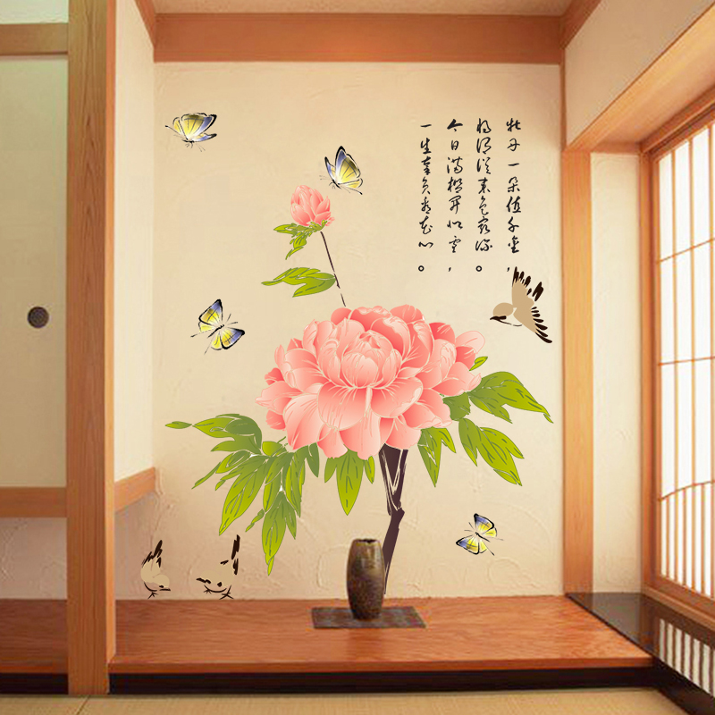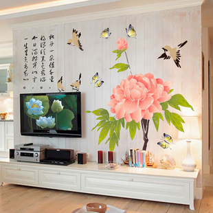 墙贴卧室温馨床头贴花客厅背景墙玄关装 饰餐厅橱窗墙上贴画牡丹花