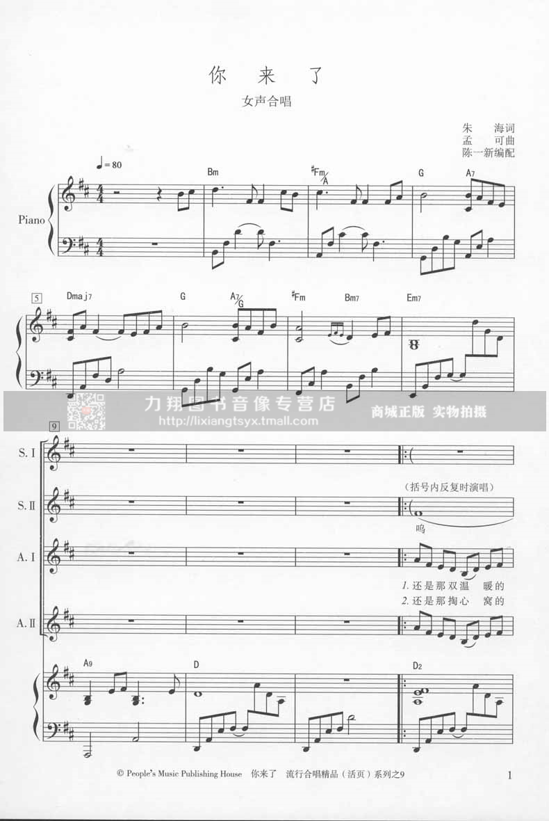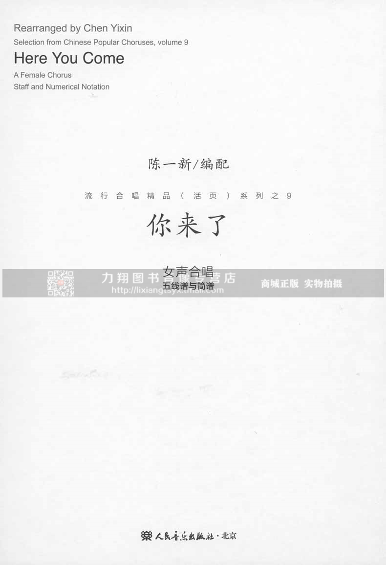 女声合唱五线谱与简谱陈一新编人民音乐出版 附1MP3光盘 社 流行合唱精品活页系列之9你来了 正版