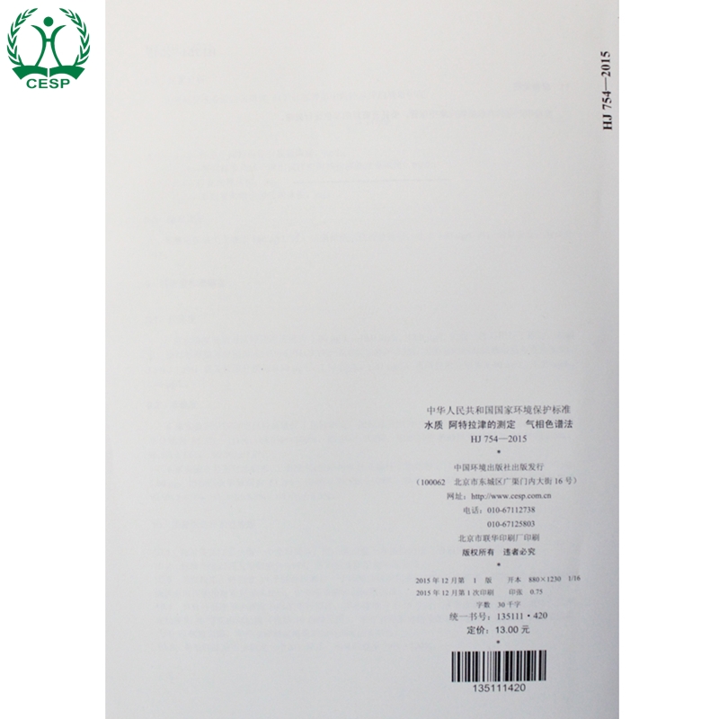 环境保护 水质 2015 测定 中国环境出版 国标 754 国家标准 气相色谱法 135111420 社 阿特拉津 官方旗舰店