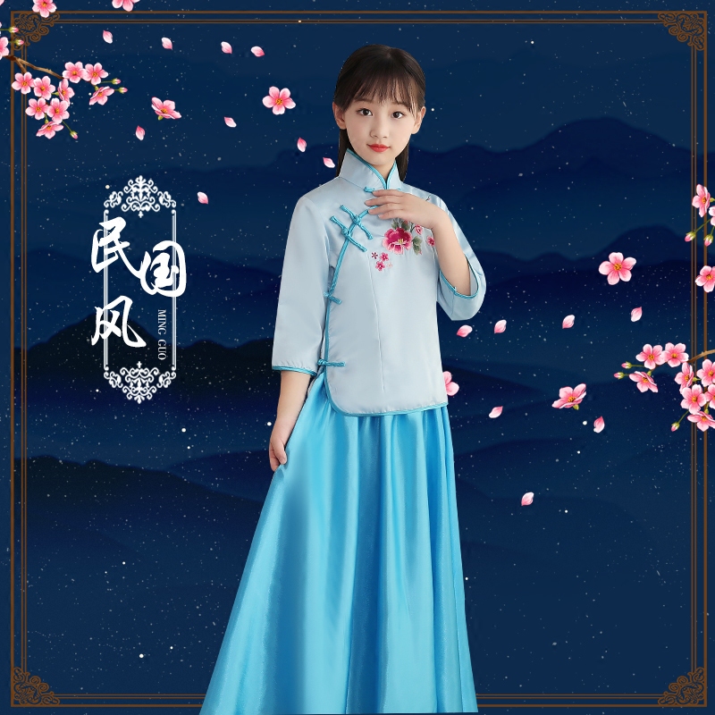 春夏套装 中国风民国风童装 古装 复古女装 儿童民国女童古筝演出服装