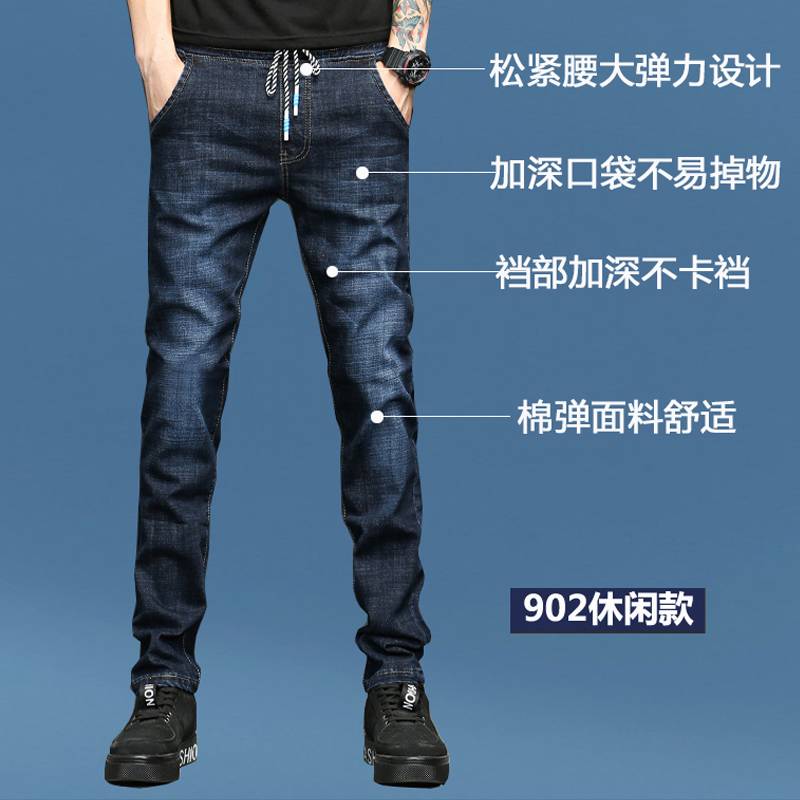 无铁无磁无金属电子厂 男春秋直筒宽松休闲裤 裤 子男生松紧腰牛仔裤