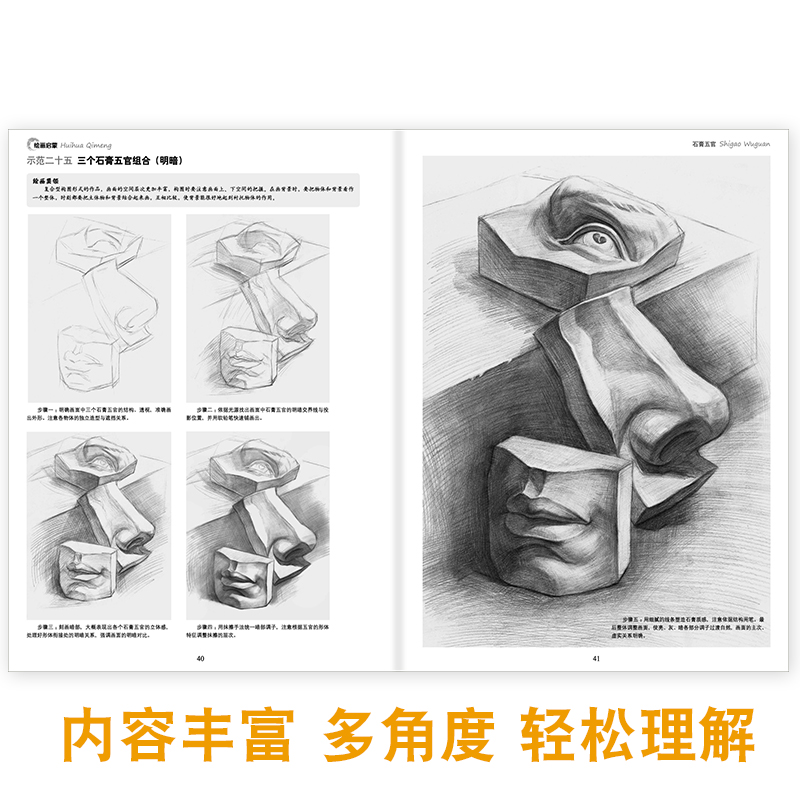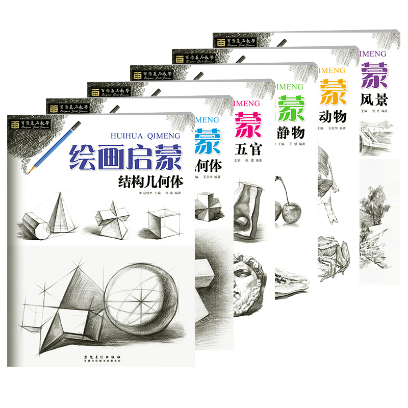 社 安徽美术出版 绘画启蒙6册全套 结构几何体素描静物素描动物素描风景石膏几何体石膏五官素描临摹入门初级自学基础教程教材书籍