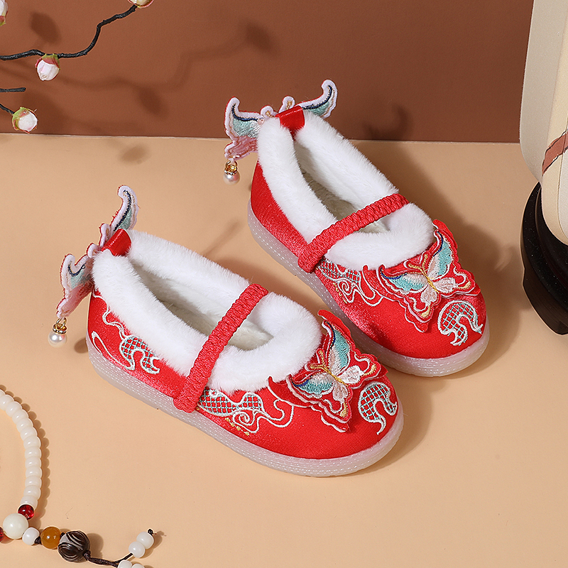 马面裙古风加绒棉鞋 女童鞋 新款 儿童靴子2023冬季 国风秋冬 子汉服鞋