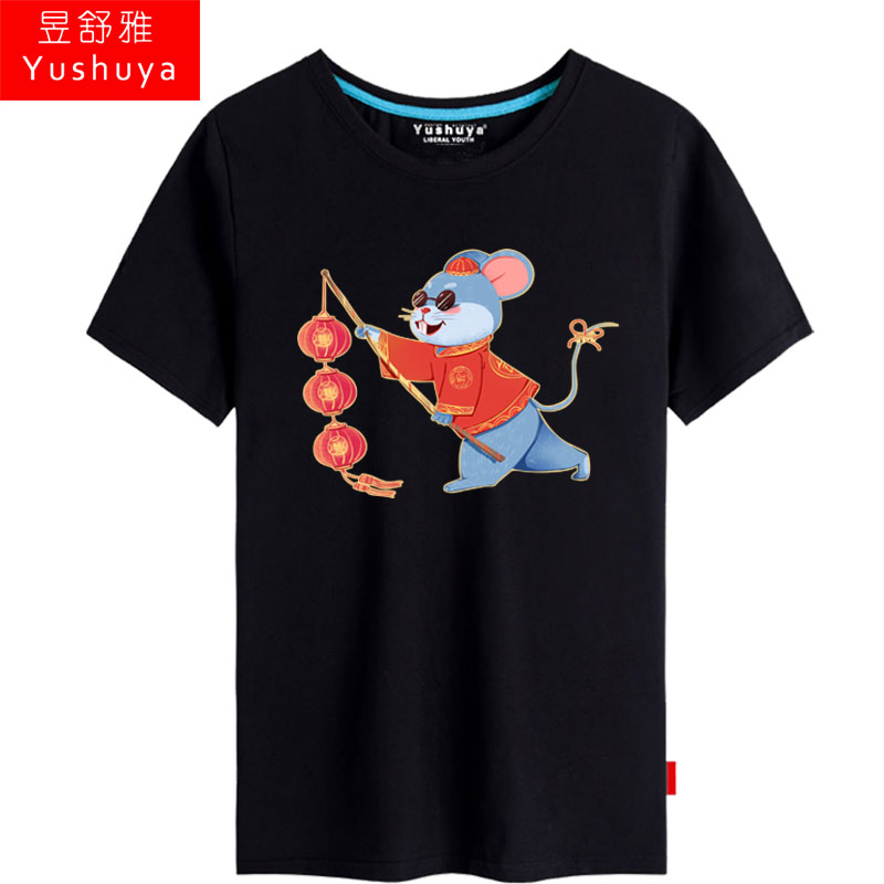 体 男女公司活动红色喜庆衣服纯棉半截袖 2020鼠年本命年短袖 t恤衫