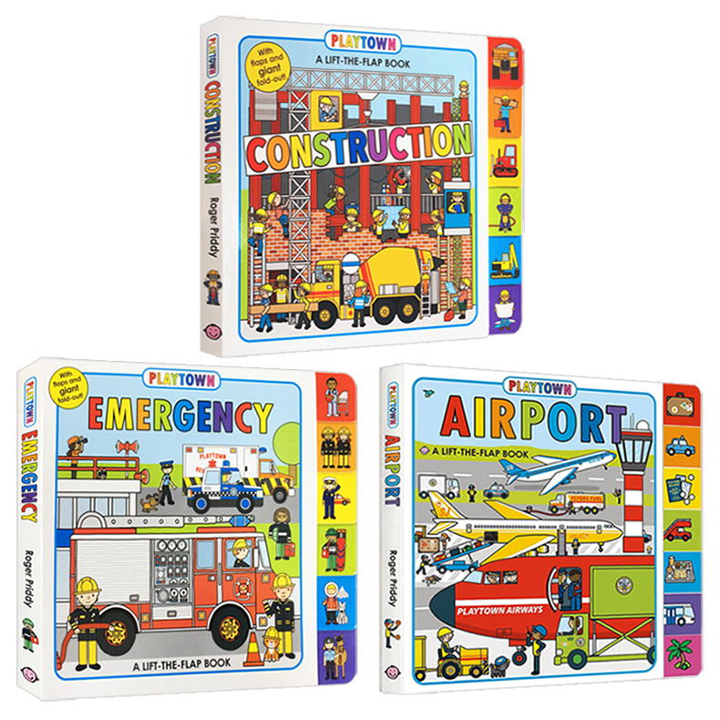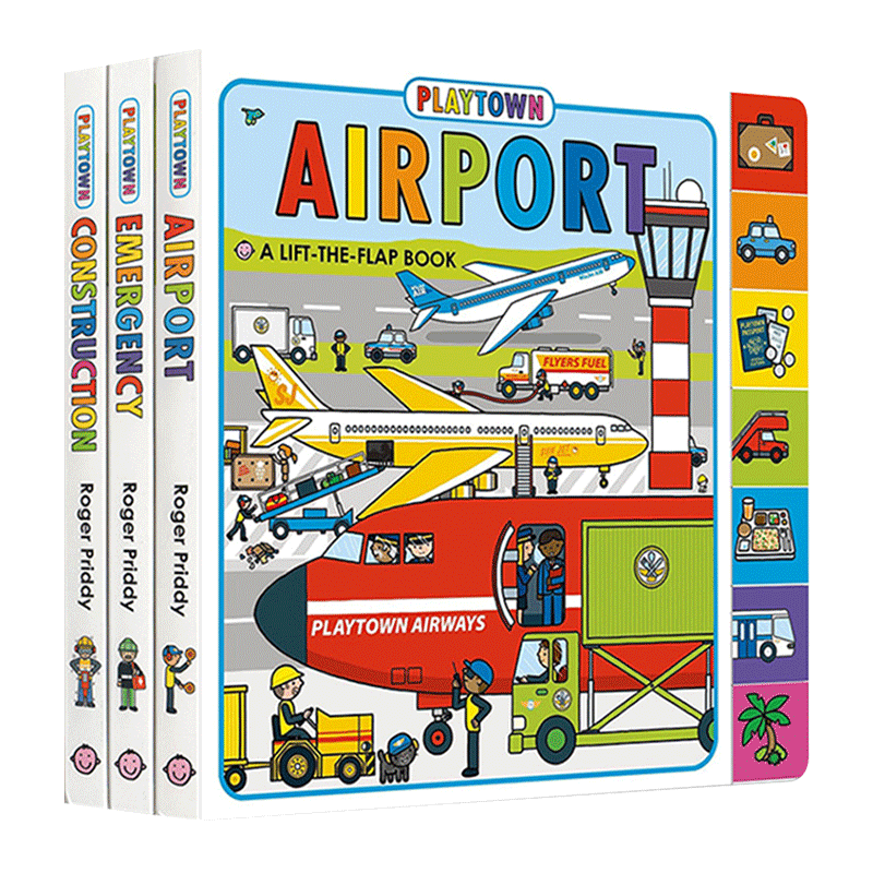 儿童纸板翻翻书 书 建筑 英语辅导玩具游戏进口原版 幼儿启蒙绘本 英文版 Playtown 紧急情况 机场 玩玩镇系列 英文原版