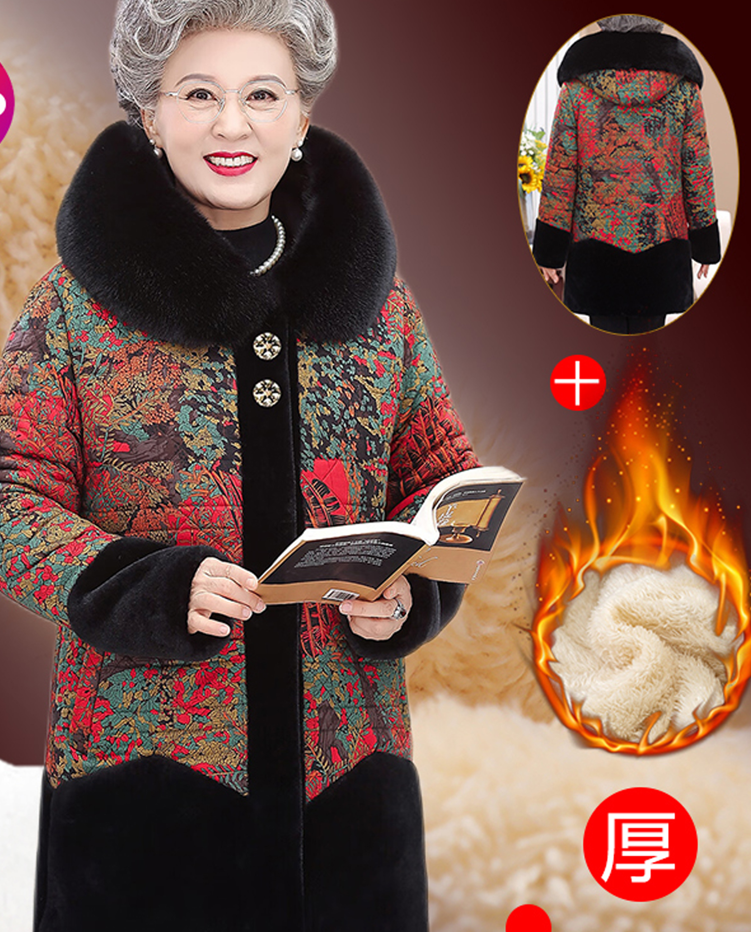 棉衣中长款 冬装 外套加绒加厚老人棉袄老太太棉服 奶奶装 中老年女装